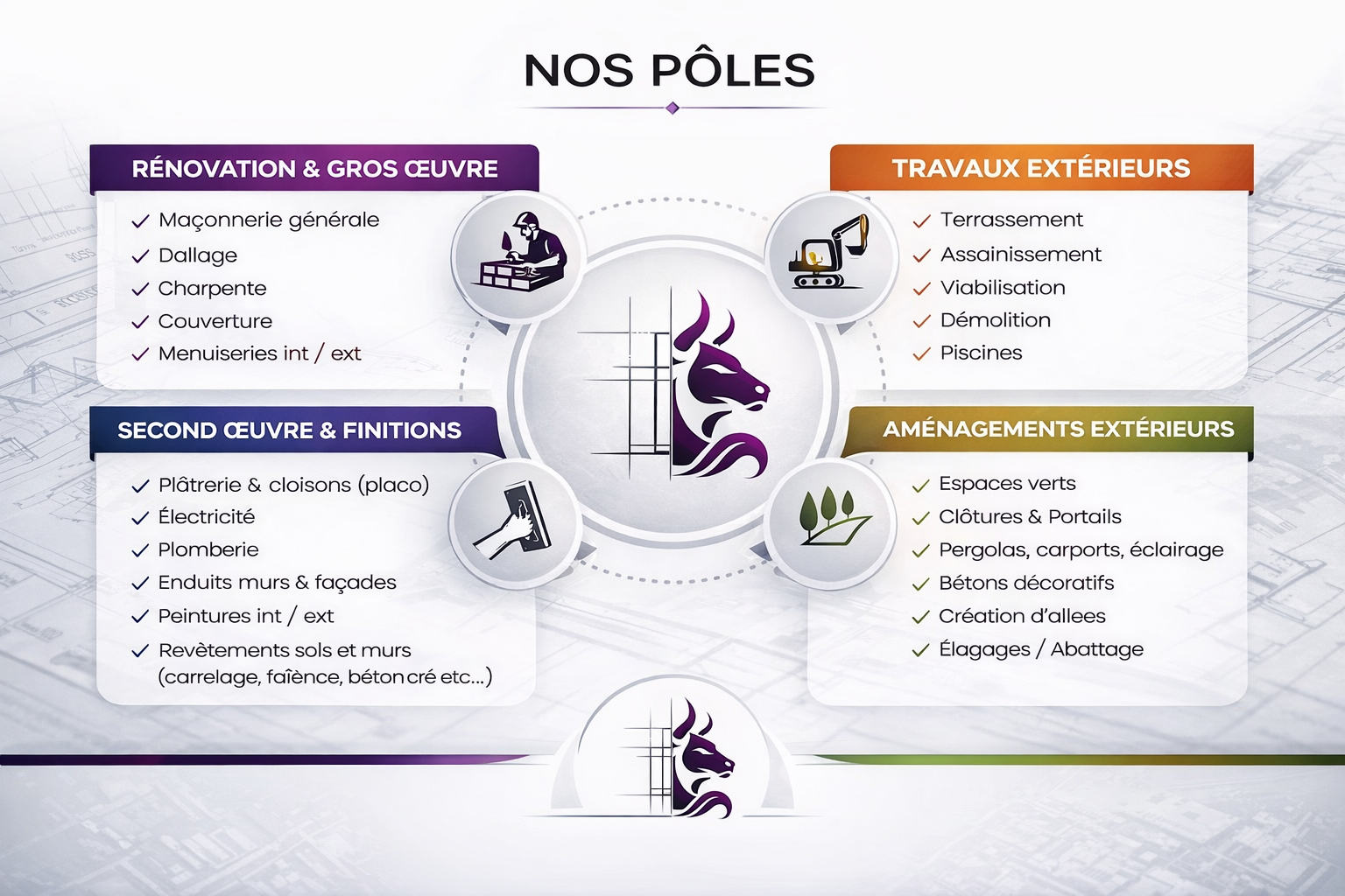 Entreprise spécialisée dans les travaux d’aménagements pour particuliers et professionnels. Nous transformons vos espaces en lieux de vie